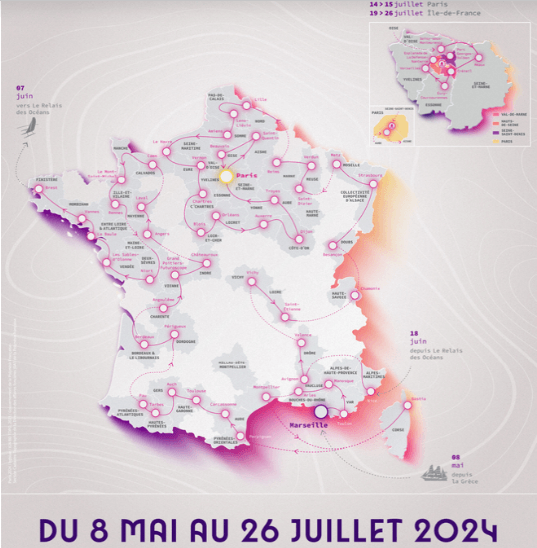 가능한 한 많은 프랑스 국민과 함께 하기 위해 성화 봉송 루트는 최대한 많은 지역과 적어도 하나의 해외 영토를 통과할 것입니다. 일생에 한 번쯤 올림픽 성화를 들고 싶다는 영광된 꿈을 꾸지 않은 사람이 있을까요?